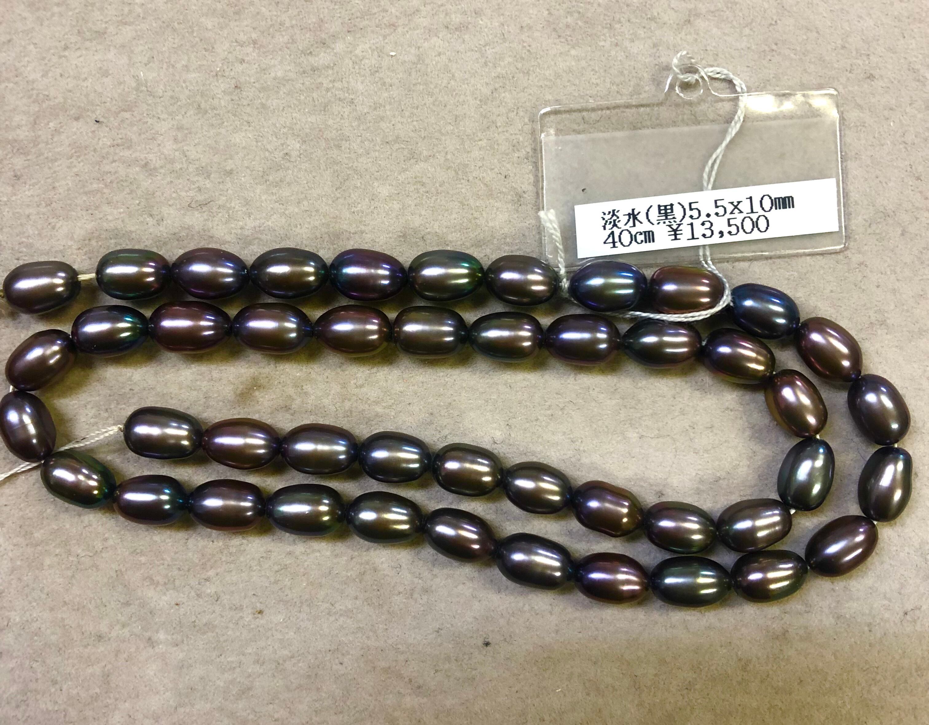 ・淡水(黒)染め 40㎝連 約5.5×10㎜ (約0.5㎜貫通穴あき) 13,500円