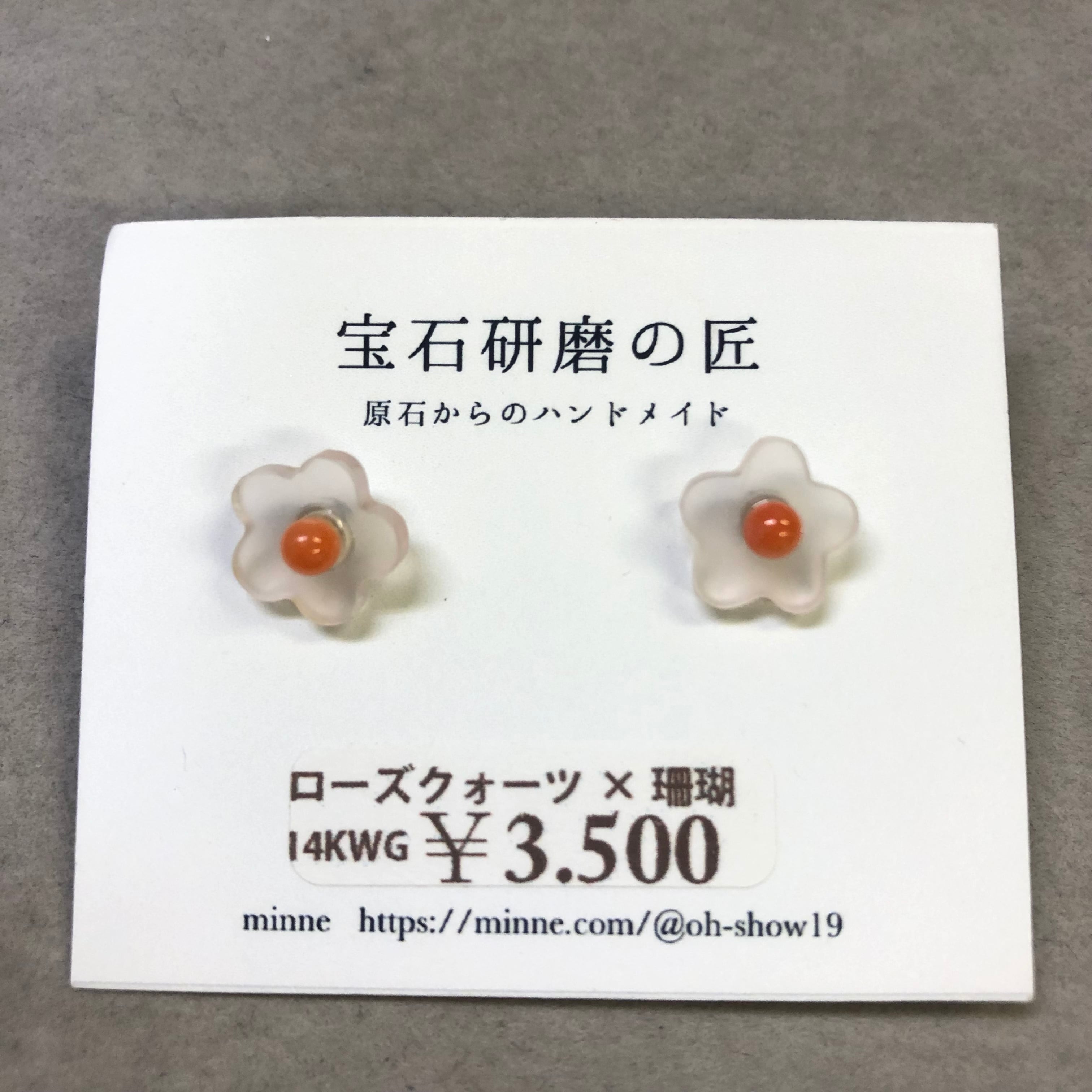 ・ピアス 14KWG ローズクォーツ×珊瑚 3,500円