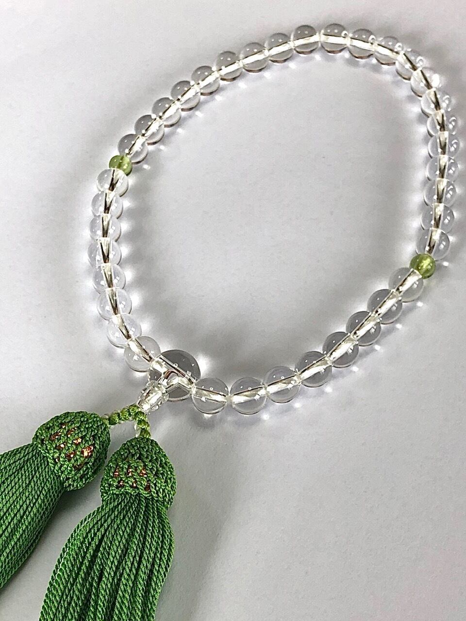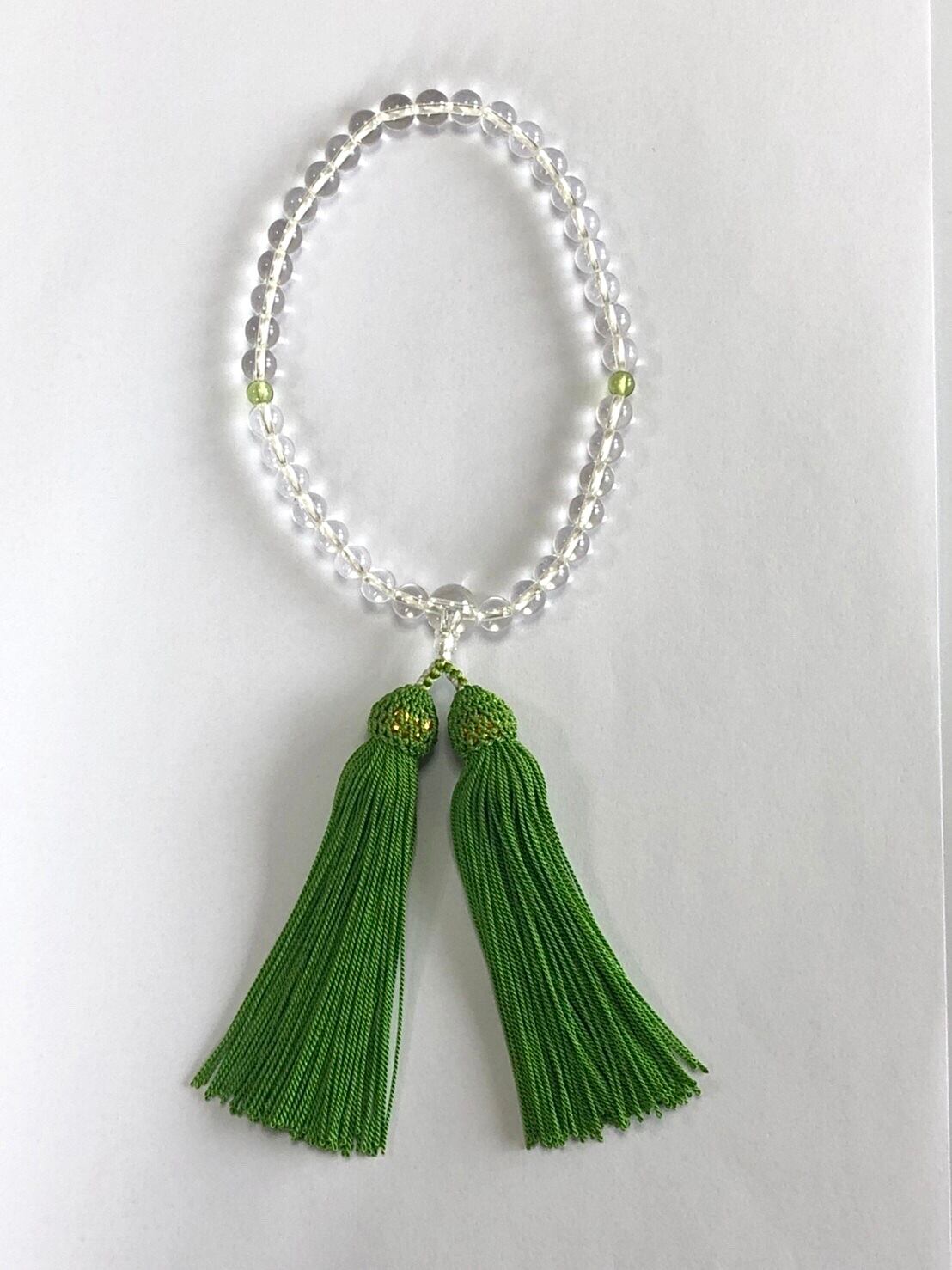 数珠 女性サイズ 水晶 ペリドット 天然石 パワーストーン s0080